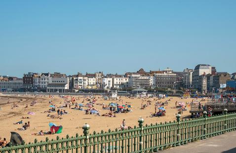 A Whitstable, au premier jour des vacances scolaires, mercredi, quelques familles occupent les galets de la plage de Tankerton, bordée de bungalows en bois colorés.