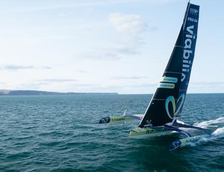 Remis à l’eau début septembre, le trimaran a aussitôt repris du service lors de deux journées dédiées aux partenaires Viabilis, « deux super journées ventées à plus de 35 nœuds, qui ont permis de faire le plein d’énergie et d’officialiser la rentrée ».