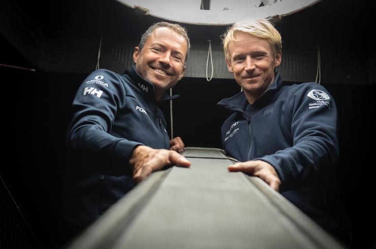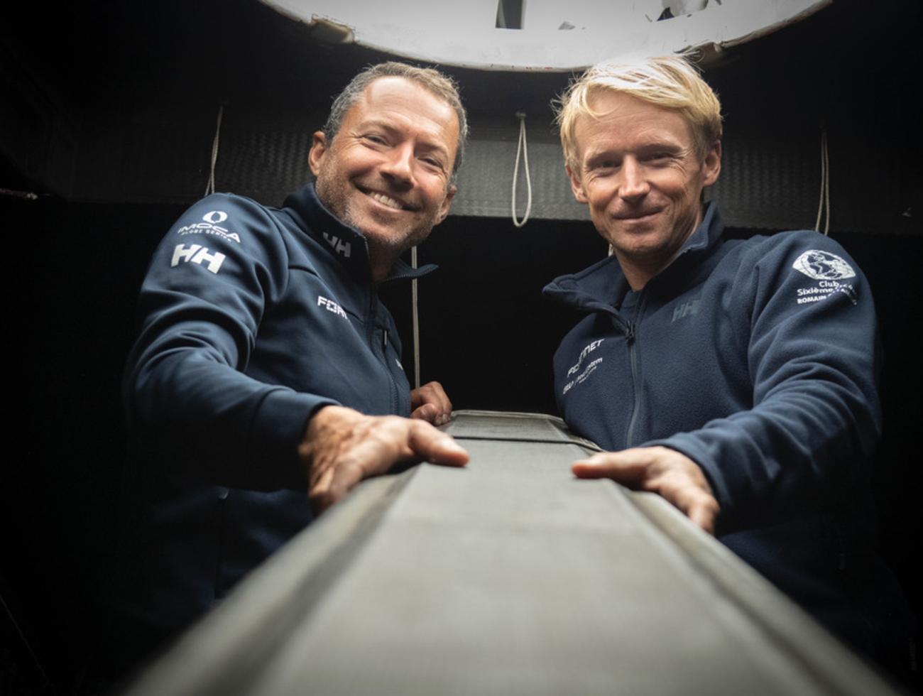 En 2024, alors que Romain voit son bateau démâté deux mois avant le Vendée Globe, Maxime lui cède son ancien mât, lui permettant de prendre le départ. Une solidarité devenue amitié. Aujourd’hui, ils unissent leurs forces sur la TRANSAT CAFÉ L'OR 2025 : un projet sportif, mais aussi une aventure humaine fondée sur la confiance, la complicité et le partage.