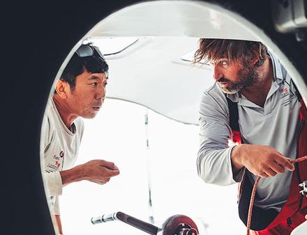 Masa Suzuki : « Nous communiquons bien. Mon français est encore très basique, je ne connais que quelques mots, mais nous utilisons l'anglais et aussi le « langage des marins », et ça marche ! Sur l'eau, ce qui compte, c'est davantage la confiance et la clarté des actions que la perfection des mots. J'essaie également d'améliorer mon français afin de m'intégrer davantage à la communauté. »