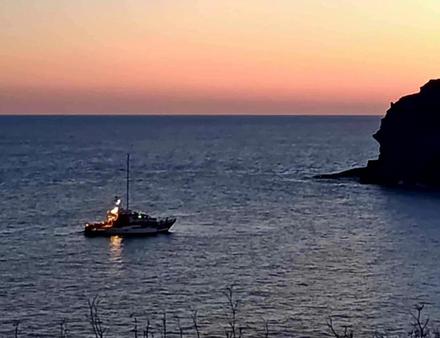 À 18 h 56, le canot appareille et arrive sur zone 35 minutes plus tard. À leur approche, aucune fumée visible : un signe encourageant. Deux sauveteurs montent à bord du voilier pour inspection - le feu est bel et bien éteint, l’extincteur ayant joué son rôle avant que les flammes ne se propagent dans la coque en résine.