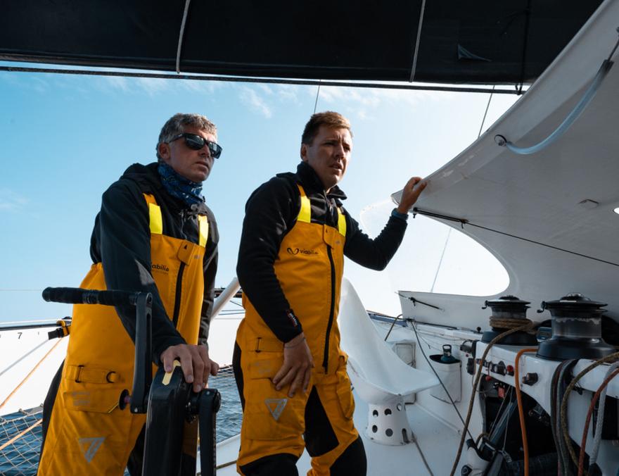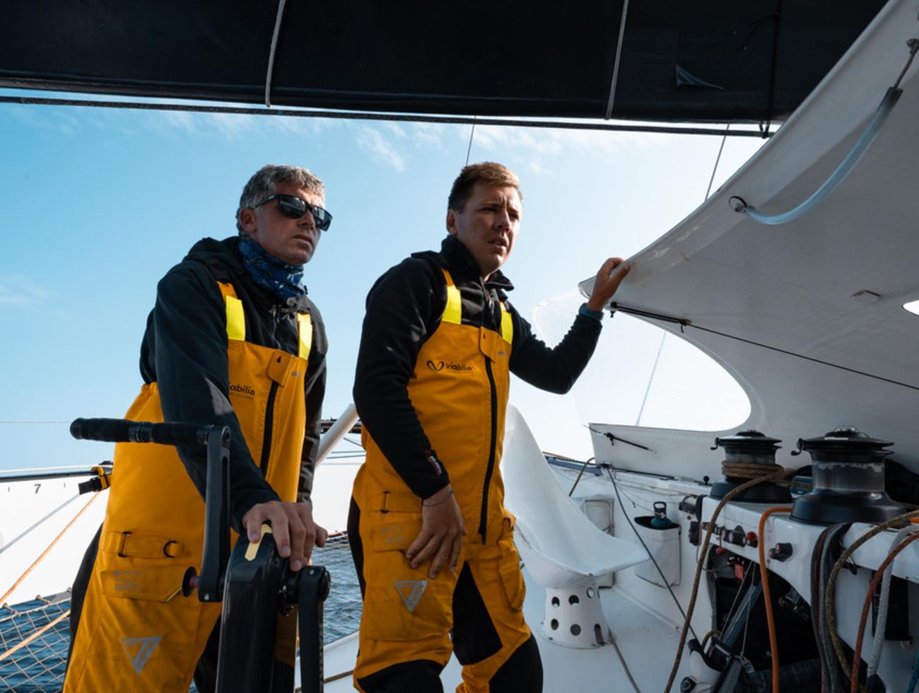 À bord de Viabilis Océans, la recherche d’efficacité guide chaque choix : avitaillement pour une douzaine de jours (chocolat obligatoire !), un Jetboil, un pouf et un sac de couchage pour deux, pas de superflu pour ne pas alourdir le bateau, juste de quoi compenser les 4 500 calories dépensées par jour et s’hydrater un maximum. Le trimaran de 50 pieds, récemment équipé d’une casquette de protection sur le cockpit conçue par l’équipe technique de BE Racing, offre un vrai plus pour le confort et la sécurité. « C’est un élément clé, souligne Baptiste. En début de course on dormira à l’intérieur car ce sera humide, peut-être dehors ensuite. »