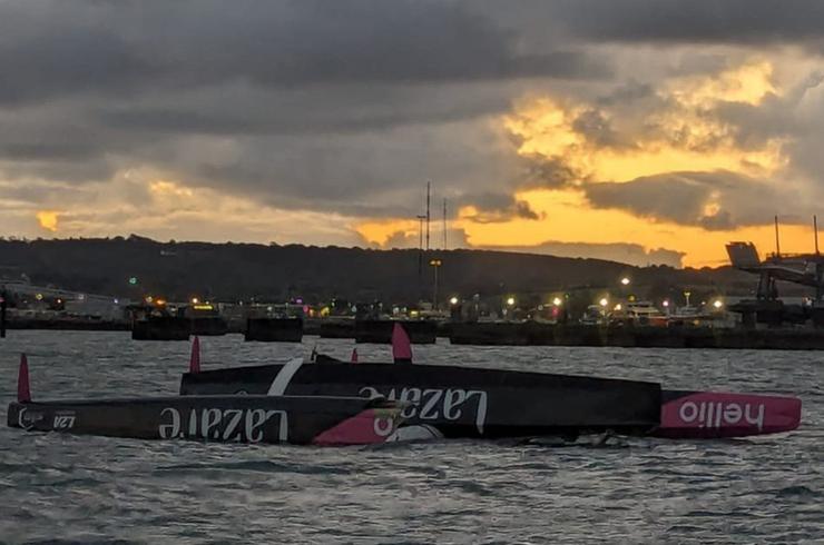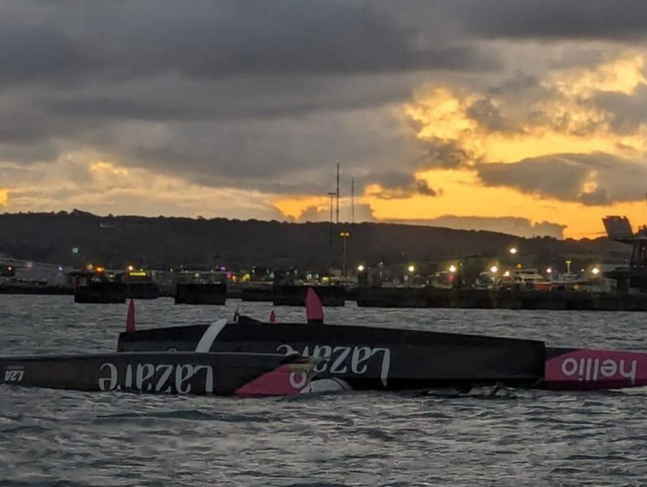 Quelques heures plus tôt, à 16h30, le trimaran de 15 mètres quittait le port pour rejoindre le départ de la Transat Café L’Or. Mais vers 22h27, la balise de détresse se déclenche : Lazare x Hellio vient de chavirer, à hauteur de La Hague, dans des vents établis à 25 nœuds, avec des rafales dépassant 30 nœuds.