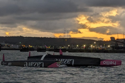 Dans la nuit du 25 au 26 octobre, le trimaran Lazare x Hellio a chaviré au large du Cotentin, à seulement trois milles des côtes. Les deux skippers, Erwan Le Draoulec et Tanguy Le Turquais, engagés sur la Transat Café L’Or, ont été secourus sains et saufs après une opération hélitreuillée spectaculaire, menée dans des conditions très musclées.