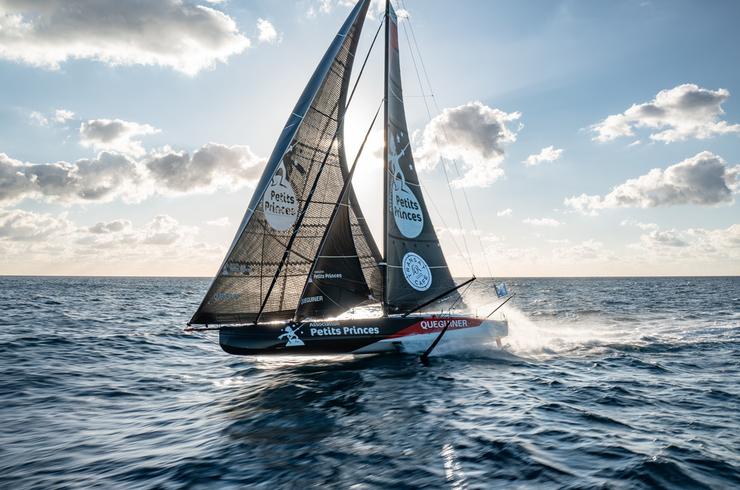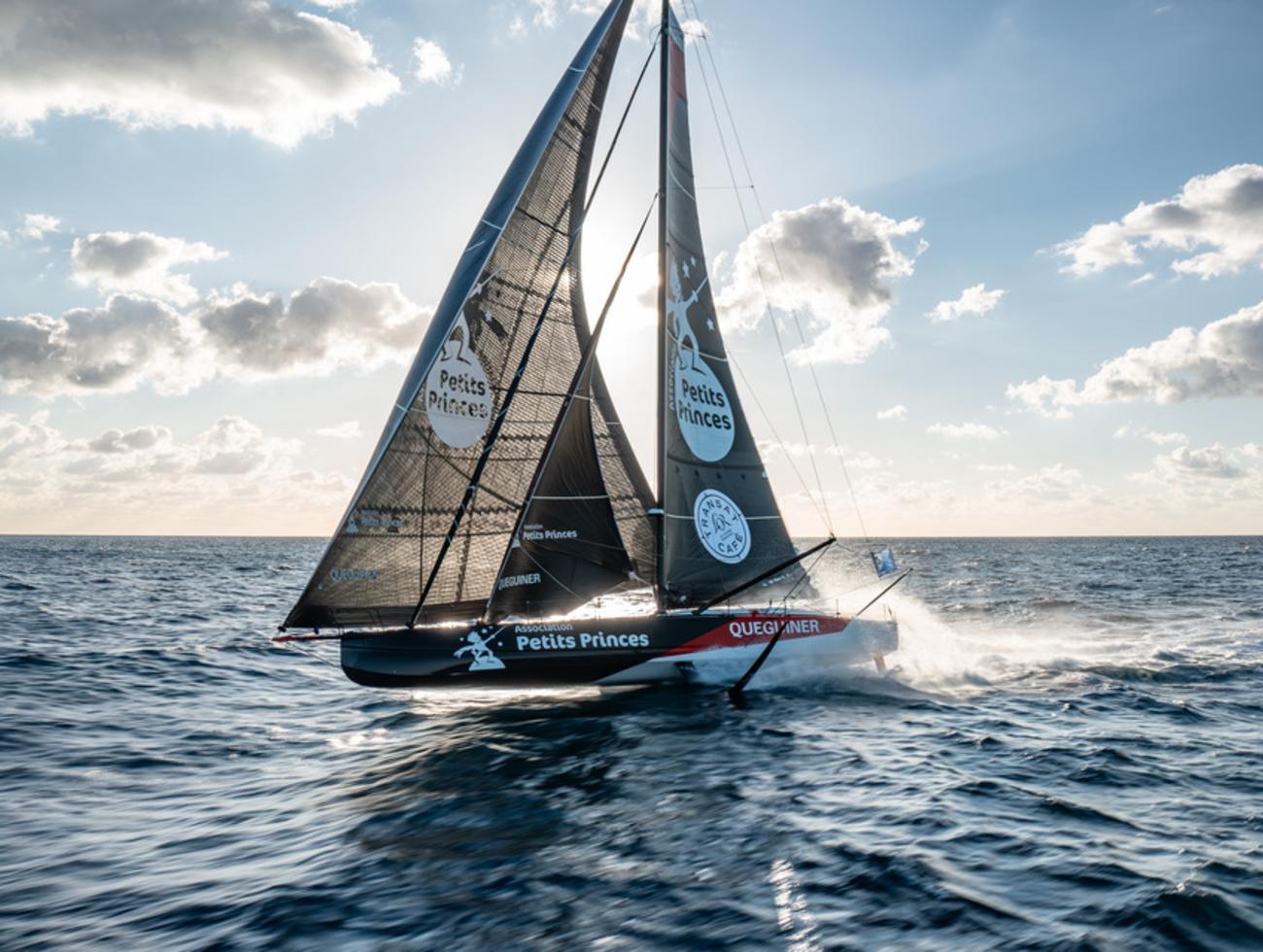 Quatre heures d’arrêt, pas une de plus, samedi à Lanzarote. Une intervention aussi chirurgicale que réussie sur le système de quille. Depuis, Association Petits Princes - Quéguiner est reparti à bloc, de nouveau à 100% de son potentiel. A bord, ce lundi matin, Elodie Bonafous et Yann Eliès évoluent à haute vitesse dans des alizés d’école, littéralement à mi-chemin entre le Sahara occidental et le Cap Vert. Le tableau est idyllique : mer plate, lumière blanche, air chaud. Mais la course, elle, est tout sauf simple. Devant, les leaders ont bénéficié d’un peu plus de pression ces dernières heures et ont légèrement creusé l’écart. Rien n’est cependant figé. Plus de 2 000 milles restent à couvrir jusqu’à Fort-de-France. La trajectoire s’annonce subtile et exigeante et le duo, sûr de sa force, pleinement lucide, attaque sans aucun complexe.