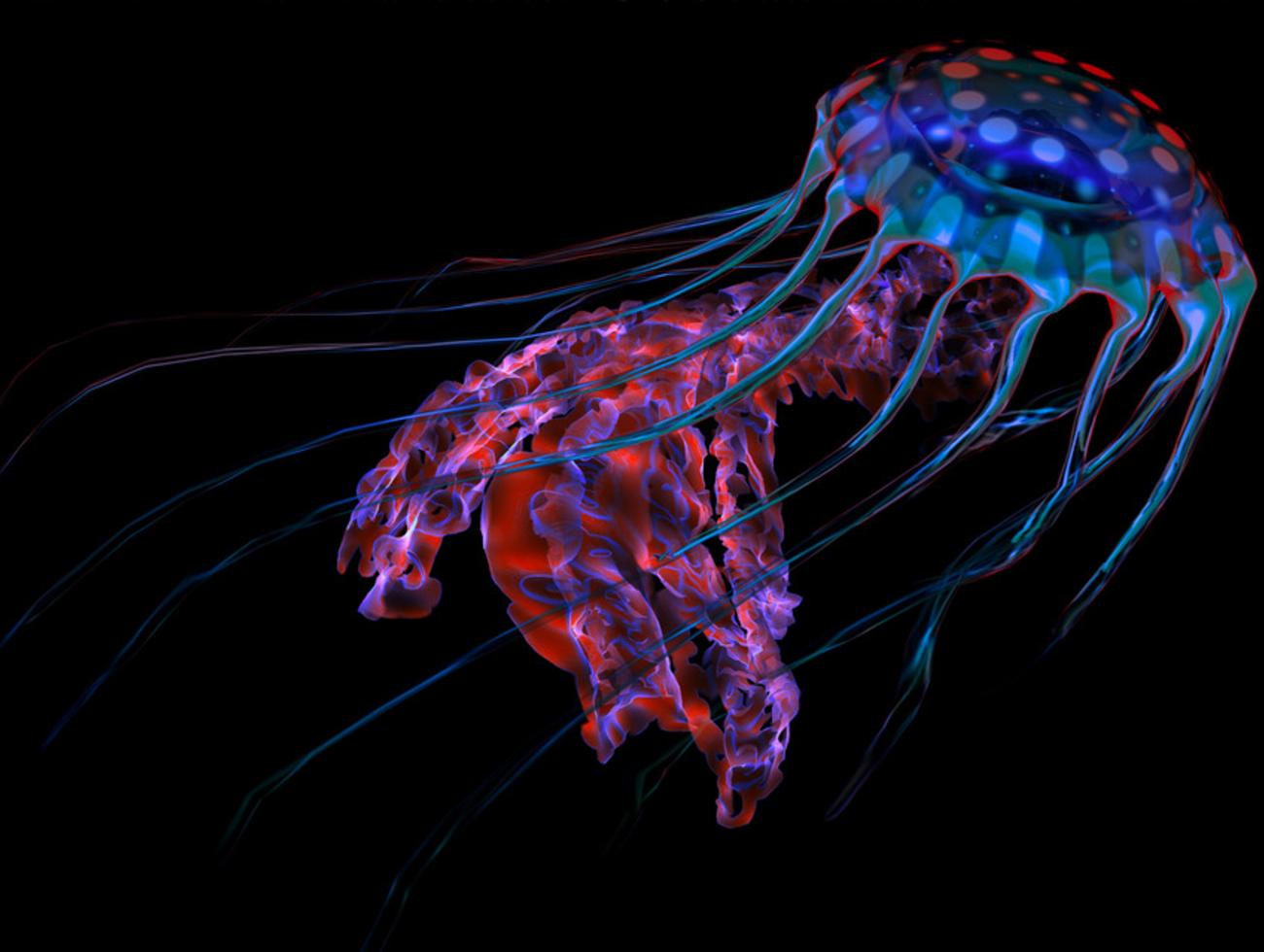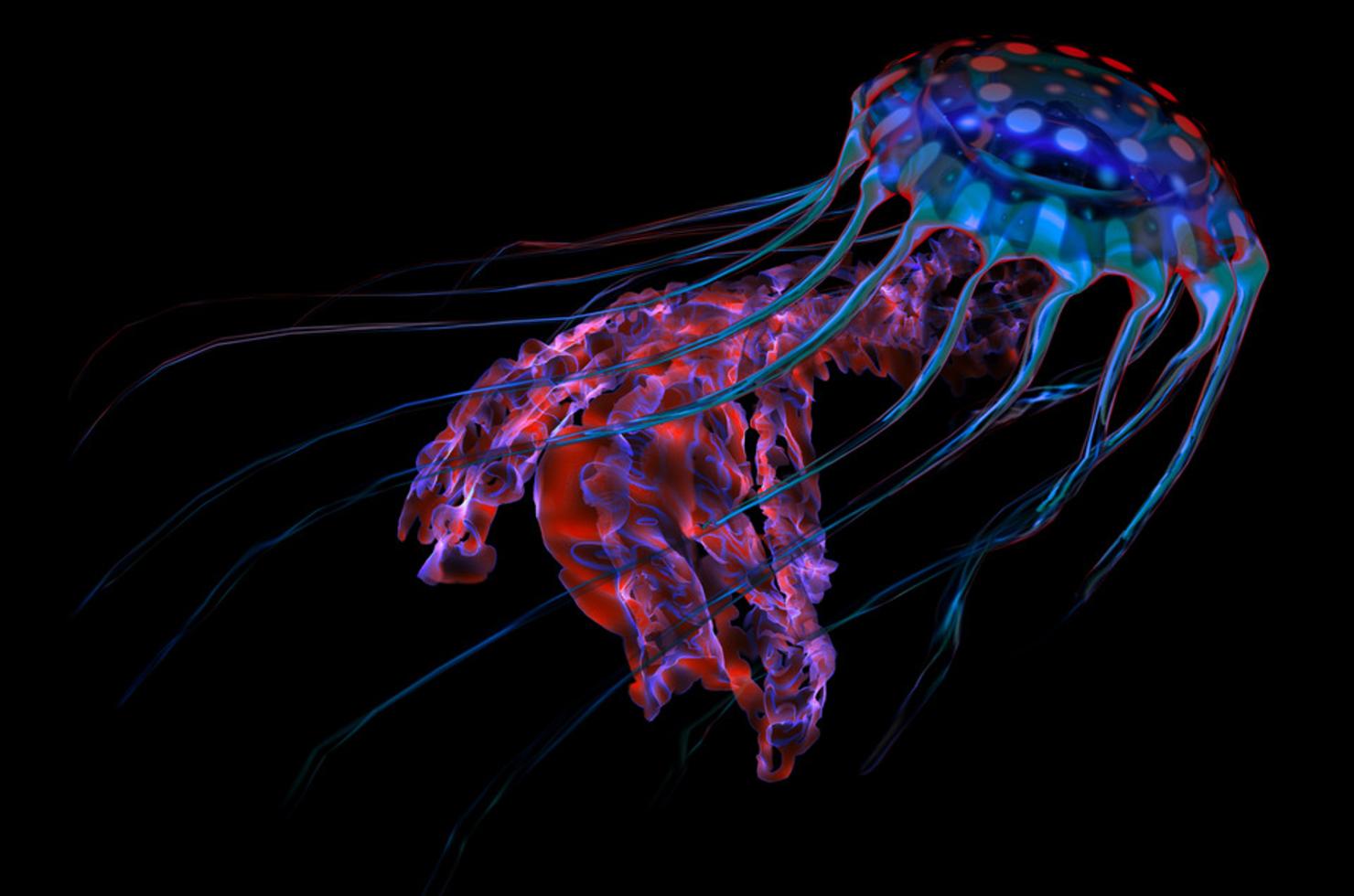 Des siphonophores, en grande partie translucides, dérivent, tandis que des poissons de la taille d'un ongle scintillent.