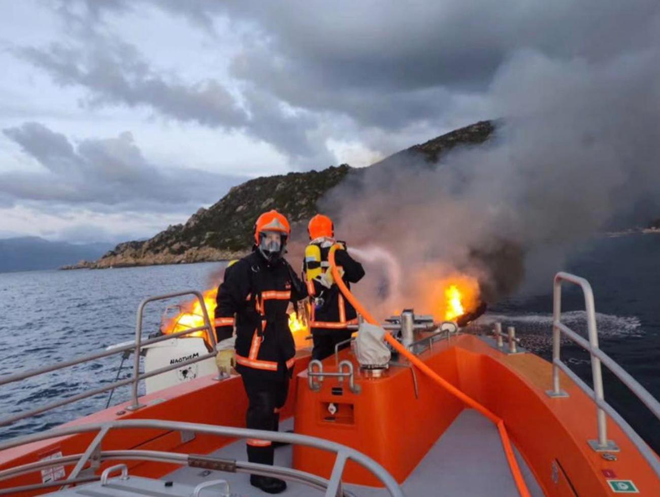 Pour maîtriser l’incendie, le navire de sauvetage hauturier SNS 17-07 Cyrnos a appareillé en urgence, avec à son bord deux sapeurs-pompiers du centre de secours du Rizzanese, renforçant ainsi les moyens de lutte contre le sinistre. Une lance à eau puis une lance à mousse ont été engagées afin de circonscrire et noyer les flammes au plus vite.