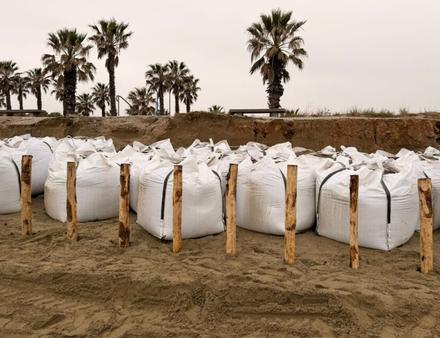 Le paysage a brutalement changé sur le littoral des Pyrénées-Orientales. À Sainte-Marie-la-Mer, des centaines de sacs blancs remplis de sable ont été installés en première ligne face à la mer. Une intervention spectaculaire, décidée pour tenter de freiner une érosion devenue préoccupante. Ces imposants sacs géotextiles ont été déployés le long de la plage afin d’absorber l’énergie des vagues et de limiter le recul du trait de côte. Les derniers épisodes de forte houle ont fragilisé le cordon dunaire et accéléré la perte de sable, menaçant à terme les aménagements situés en arrière-plage.