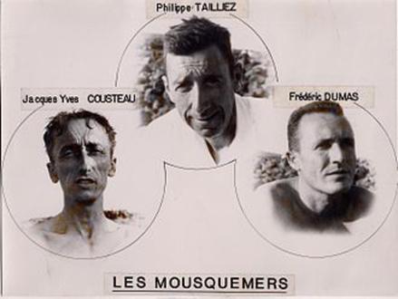En convalescence à Toulon, il embarque sur le Condorcet où un certain Pierre Thailliez (un des pionniers, avec Cousteau, de la plongée sous-marine) lui prête ses lunettes sous-marines Fernez (ces lunettes sont considérées aujourd’hui comme précurseurs des lunettes de plongée actuelles !). En essayant le fameux instrument, révolutionnaire de son temps, Cousteau s’éprend instantanément de la vie marine. Il se trouve émerveillé devant la faune et la flore, pleines de couleur. En août 1937, Philippe Thailliez peaufine la formation de Cousteau en plongée sous-marine. En 1938, Thailliez rencontre un autre chasseur sous-marin, Frédéric Dumas. Avec Cousteau, ils formeront l’équipe subaquatique les « Mousquemers ». Tout comme le célèbre roman Les Trois Mousquetaires, l’équipe de Cousteau aura un quatrième acolyte, Léon Vêche, pro de la logistique.