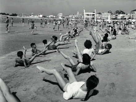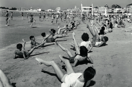 Cette série « Allons voir la mer avec Doisneau » est une promenade en bord de mer, des plages aux ports, jusque sous l’eau, en compagnie de marins pêcheurs, de vacanciers, de baigneurs, de dockers, de plongeurs, de moussaillons d’un jour et de touristes balnéaires. Réalisées principalement entre le milieu des années 1930 et la fin des années 1960, les photographies de mer de Robert Doisneau s’inscrivent dans le courant de la « photographie humaniste » qui place l’homme et ses activités – vie de famille, loisirs, travail – au centre de ses préoccupations. Au même moment, la maison d’édition Glénat sort un beau livre de 224 pages « Allons voir la mer avec Doisneau » rédigé par Angelina Meslem, historienne de la photographie qui a été également responsable de la collection de photographies du Musée National de la Marine.