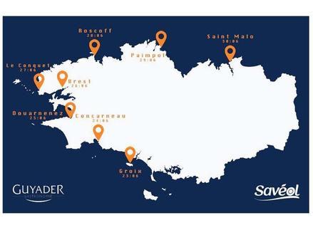 A l’extrême ouest de la France, Le Conquet est un port bien connu des marins qui viennent s’y abriter quand le chenal du Four se fait mauvais. Les amateurs de cuisine connaissent aussi la table du prometteur Philippe David, chef de l’hôtel Sainte Barbe. Le jeune chef embarque à bord de Guyader – Savéol plein d’humilité devant les grands noms qui le précèdent. Si la pêche le permet, il préparera sa recette fétiche : « le Saint – Pierre au bouillon de champignons aigre doux, avec une croute de sarrasin et de noisettes ainsi qu’un assaisonnement venu du monde entier ». De quoi mettre l’eau à la bouche aux championnes Hélène Noesmen (4 titres mondiaux en planche à voile) et Aloïse Retornaz qui prépare les Jeux Olympiques en 470.
