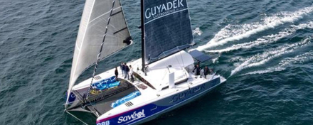 L’ancien chef de l’hôtel de Carantec, doublement étoilé de 2002 à 2019, reste à bord pour la quatrième étape des Escales Culinaires en Bretagne. A Brest, le catamaran Guyader – Savéol arrive en pleine fête du vélo puisque c’est le Grand Départ du Tour de France cycliste. Patrick Jeffroy sera cette fois secondé par toute une brigade de champions. Charlie Dalin, qui vient de terminer deuxième du Vendée Globe est en effet accompagné par Jean-Luc Nélias son team manager et Paul Meilhat son co-skipper. Avec un tel équipage, le convoyage vers Le Conquet, à la pointe du Finistère, devrait être une formalité.