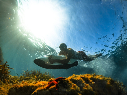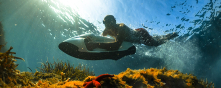 Modèle d’entrée de gamme, ce scooter sous-marin peut atteindre une vitesse maximale de 15km/h, avec une autonomie de 70 minutes. Il peut descendre jusqu’à 20 mètres de profondeur.