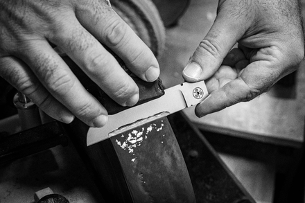 Emmanuel Labory arrive dans le monde de la coutellerie avec des idées. C’est un bricoleur dans l’âme qui consacre une partie de son temps, en parallèle de la production, à confronter ses inventions à la réalité de la fabrication. C’est au sein de son atelier concarnois qu’il met au point le système de verrouillage breveté Exolock conçu autour de la tige en inox, unique pièce dont le pliage ingénieux permet non seulement l’assemblage du manche et de la lame mais également la rotation et le blocage de cette dernière. Une solution unique, d’une simplicité inégalée, qui donne vie à un couteau léger et fonctionnel se résumant à trois éléments : le manche, la lame et la tige.
