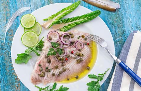 o Ingrédients : 100 g de beurre, 1 cuillère à soupe de câpres égouttées, le jus d'un citron, quelques brins d'aneth frais, sel, poivre.