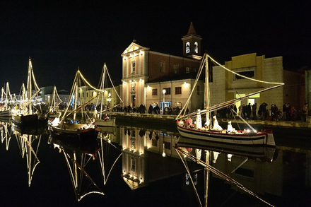 En Italie, le musée maritime de Cesenatico accueille chaque Noël une crèche vivante flottante unique en son genre. À bord de dix anciens bateaux de pêche historiques, des statues grandeur nature représentent une communauté de pêcheurs réunie autour de la Sainte Famille. Réalisées par des artistes locaux, ces figures en bois, vêtues de tissu renforcé à la cire, sont magnifiquement éclairées, offrant une scène évocatrice observable depuis les quais du port-canal. Ce décor, où tradition maritime et célébration religieuse se mêlent, transforme chaque décembre ce lieu pittoresque en un véritable théâtre de Noël.