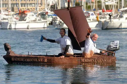 C’était le 25 septembre 2010. Le port de Concarneau, dans le Finistère, est en effervescence. Des centaines de spectateurs s’amassent le long des quais de la Ville Close. Sous leurs yeux, Georges Larnicol, meilleur ouvrier de France et artisan chocolatier réputé, met à l’eau un drôle de voilier. Long de 3,50 mètres, large de 1,20 mètre, pesant pas moins de 1,2 tonne, le bateau est intégralement constitué de chocolat, à l’exception de son ossature en sucre.