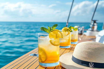 Sur un bateau, tout prend une autre saveur. Les verres de fortune, les glaçons fabriqués avec ce qu’on a sous la main, les fruits coupés à l’opinel... C’est dans cette simplicité que les meilleures fins de journée se vivent. Quelques amis, une lumière dorée, des bruits de drisses au loin, et ces boissons qui glissent doucement : c’est aussi ça, le luxe d’être en mer.