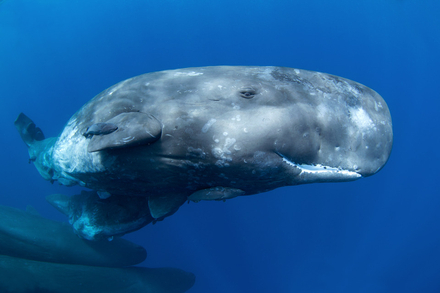 Moins long que le rorqual, mais bien plus massif, le cachalot (Physeter macrocephalus) atteint en Méditerranée entre 12 et 18 mètres pour un poids pouvant dépasser les 50 tonnes. C’est le plus gros carnivore du monde et un chasseur redoutable. Grâce à ses capacités de plongée exceptionnelles - plus de 1 000 mètres de profondeur, parfois jusqu’à deux heures sans respirer -, il se nourrit principalement de céphalopodes, dont certains calmars géants.