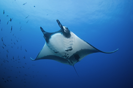 La Mobula mobular, souvent appelée raie géante méditerranéenne ou raie diable, est l’une des plus grandes espèces de raies au monde. Endémique du bassin méditerranéen, elle peut atteindre plus de 5 mètres d’envergure, bien que la plupart des individus mesurent entre 3 et 4 mètres. Discrète, elle évolue généralement dans les eaux profondes au large, loin des côtes. C’est une espèce pélagique, filtrant le plancton tout en se déplaçant en bancs.