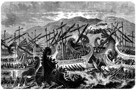 Dans le sillage des guerres médiques, les cités grecques se retrouvent menacées par l’immense armada perse de Xerxès. Athènes, déjà détruite, mise tout sur la mer. Thémistocle attire les navires perses dans le détroit de Salamine, où la largeur réduite empêche les manœuvres des lourds vaisseaux ennemis. Les trirèmes athéniennes, rapides et maniables, exploitent cet avantage et écrasent la flotte adverse. Cette victoire n’est pas seulement militaire : elle assure l’indépendance grecque et ouvre la voie à l’influence culturelle d’Athènes sur tout le monde méditerranéen.