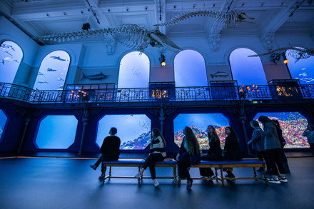 Puis vient Océano Odyssey, le moment fort de l’exposition : un spectacle immersif de 16 minutes projeté sur 310 m2 d’images, où le visiteur embarque dans le vaisseau d’exploration d’Anita, la Commandante de l’Odyssée. Cap sur le futur, au cœur du sanctuaire Pelagos, pour rencontrer une trentaine d’espèces emblématiques, dans une Méditerranée régénérée et apaisée.