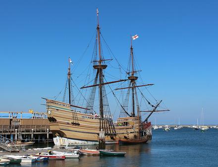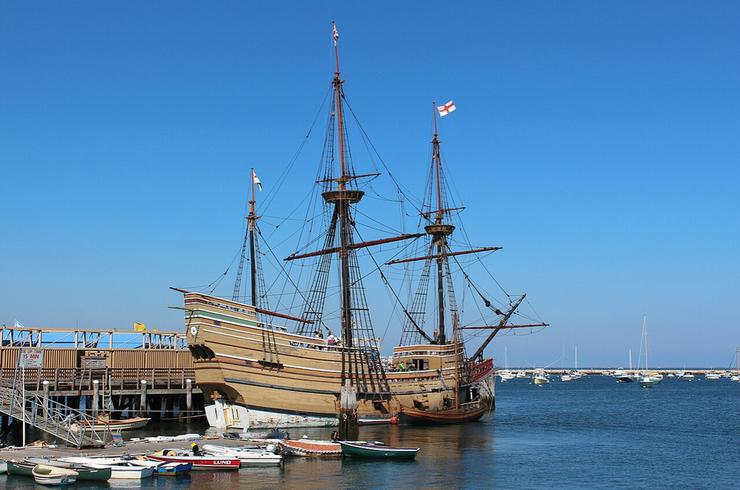 Le 9 novembre, après soixante-six jours de mer, la vigie aperçut enfin la côte américaine. Mais le navire avait dérivé : au lieu d’atteindre la Virginie, il se trouvait face aux rivages froids du Massachusetts, à l’entrée de ce qui deviendrait Cape Cod.