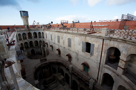 Imaginé sous Napoléon Ier, Fort Boyard devait protéger l’arsenal de Rochefort et empêcher les Anglais d’entrer par la Charente. Mais construire sur un banc de sable en pleine mer relevait de la folie pour l’époque. Les premières pierres s’enfonçaient, les fondations s’effondraient, et des décennies d’efforts furent nécessaires pour stabiliser la base. Il fallut plus de cinquante ans pour ériger ce géant de pierre de 68 mètres de long, au prix d’innombrables naufrages, d’ouvriers épuisés et d’une logistique titanesque : à marée basse, on transportait les matériaux à dos d’homme ou de barge, sous la surveillance de militaires. Achevé trop tard, il ne servit jamais à la défense : à la fin du XIXe siècle, l’artillerie moderne rendait ses murs obsolètes. Ironie de l’histoire, la forteresse conçue pour la guerre n’aura jamais tiré un seul coup de canon.