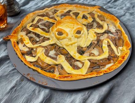 Doré à souhait, croustillant et fondant à cœur, le Kraken salé s’impose comme le monstre star d’Halloween. Entre frisson et gourmandise, cette tarte terrifiante transformera votre repas en véritable banquet des abysses. Osez le croquer... s’il ne vous croque pas avant !