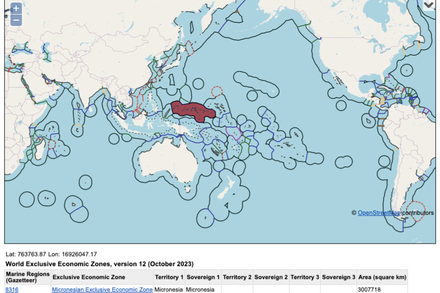 La géographie a ses paradoxes : Nauru, 21 km2 de superficie pour 12 000 habitants, possède une zone économique exclusive (ZEE) de plus de 320 000 km2. Tuvalu, à peine 26 km2 de terres émergées, contrôle un espace maritime de près de 750 000 km2. Quant aux États fédérés de Micronésie, leur ZEE s’étend sur près de 3 millions de km2, soit la taille de l’Inde.