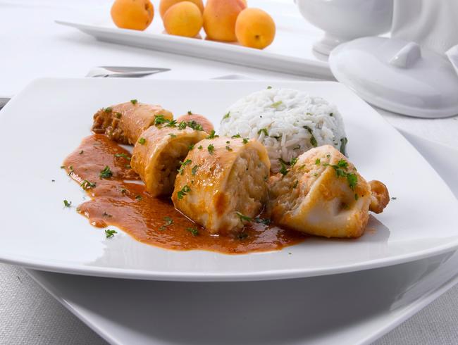 o En Espagne, les calamars farcis se mijotent parfois dans une sauce au vin blanc et au safran, plus subtile mais très parfumée.