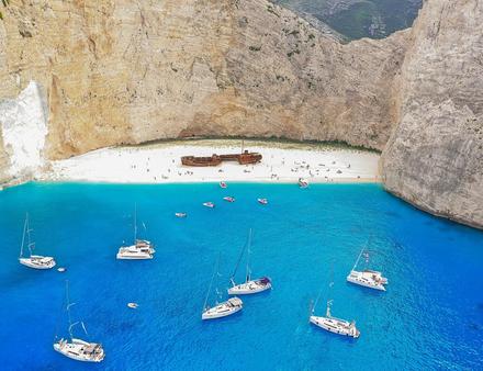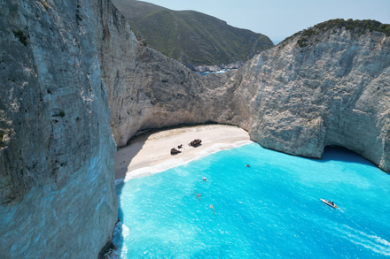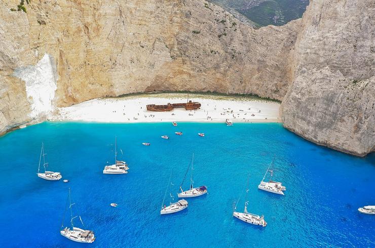 Sur l’île de Zakynthos en Grèce, Navagio est devenue l’une des criques les plus photographiées au monde. L’épave du Panagiotis, cargo échoué en 1980, aurait transporté de la contrebande lorsqu’il s’est fracassé sur la plage.