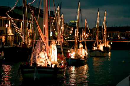 Au total, près de 50 personnages composent cette scène vivante, enrichie chaque année par l’ajout d’une nouvelle figure. Les statues sont disposées de manière à être observées depuis les rives, comme un véritable théâtre à ciel ouvert. À la nuit tombée, l’éclairage soigneusement travaillé donne vie à l’ensemble, soulignant les détails des bateaux et des personnages. Cette crèche maritime, à la fois religieuse et culturelle, rappelle l’importance historique de la mer dans la vie de la ville.