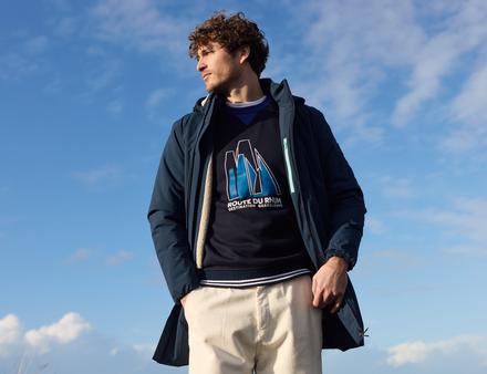 Pour cette 13e édition, les équipes de création d’Armor-lux se sont appuyées sur l’affiche officielle dévoilée à Saint-Malo en avril 2025, véritable manifeste visuel de la course. La collection reprend ses codes graphiques, ses lignes et sa dynamique, traduits dans un vestiaire cohérent et immédiatement identifiable. Les coloris, issus directement de cette identité visuelle, s’articulent autour de teintes marines profondes, de blancs lumineux et de nuances plus saisonnières, intégrées pour rester en phase avec les tendances actuelles. Loin d’une simple déclinaison graphique, cette palette traduit une volonté de continuité entre l’événement et l’ADN Armor-lux, avec des pièces pensées pour s’inscrire durablement dans le vestiaire, au-delà du temps de la course.