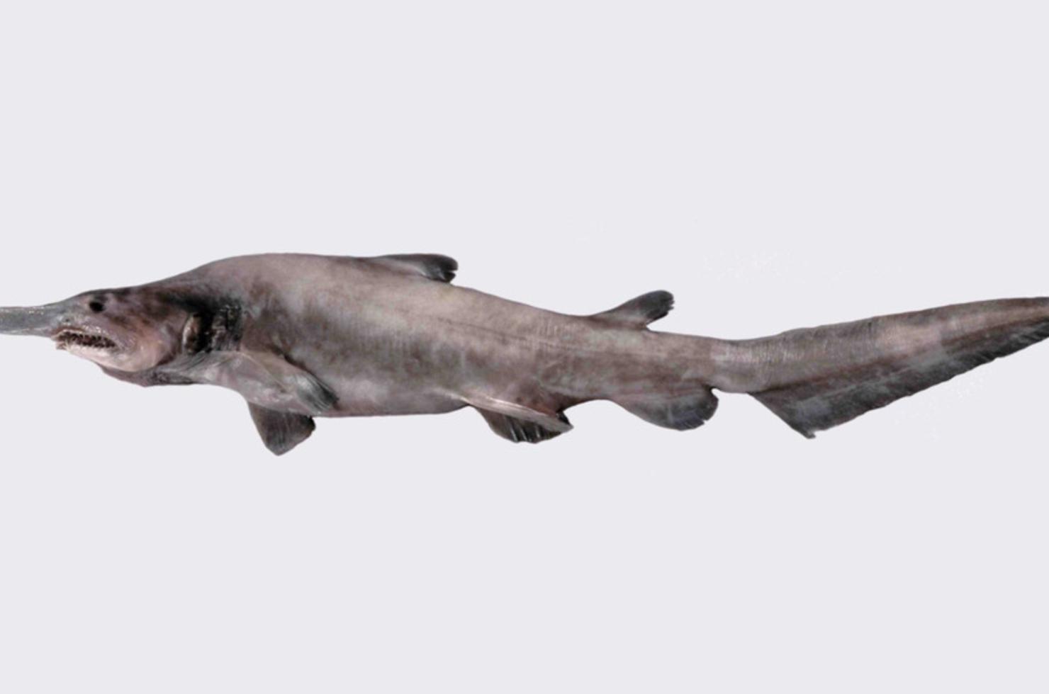 Le premier regard posé sur le requin lutin laisse souvent place à l’incrédulité. Son profil effilé, dominé par un long rostre aplati, évoque davantage une créature de fiction qu’un poisson réel. Pourtant, Mitsukurina owstoni évolue bel et bien dans les océans actuels. Décrit scientifiquement à la fin du XIXe siècle à partir d’un spécimen pêché au large du Japon, il est aujourd’hui considéré comme le dernier représentant de la famille des Mitsukurinidae. Cette lignée remonte au Crétacé, ce qui en fait un véritable “fossile vivant”, comparable au Cœlacanthe pour son ancienneté évolutive. Sa morphologie n’a que peu évolué au fil des millions d’années. Dans les profondeurs, l’efficacité prime sur l’esthétique. Et le requin lutin en est la parfaite illustration.