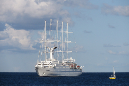 Mis à l’eau en 1992 aux chantiers navals du Havre, le Club Med 2 demeure aujourd’hui le plus grand voilier de croisière au monde. Long de 187 m, large de 20 m, doté de 5 mâts culminant à 54 m et déployant près de 2 500 m² de voilure, il associe la silhouette élancée d’un grand voilier classique aux exigences structurelles d’un navire moderne classé pour la navigation internationale. Construit en acier et en aluminium, équipé de stabilisateurs et de systèmes de propulsion diesel-électriques, il répond aux normes de sécurité maritime internationales applicables aux navires à passagers. Sous pavillon français, il est exploité par la compagnie Club Med Croisières et soumis aux réglementations européennes en matière de sécurité, d’environnement et de formation des équipages.