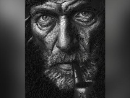 Le projet repose sur une idée visuelle forte : chaque portrait est entièrement construit avec des mots. Les ombres, les volumes, les traits du visage, tout naît de l’écriture. De loin, l’image frappe par sa puissance. De près, elle se dévoile autrement, mot après mot, comme si la biographie affleurait à la surface du visage.