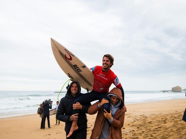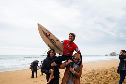 En retrait des compétitions cette saison, le Landais Vincent Duvigac a frappé très fort en s’adjugeant une 3e couronne à l’occasion d’une édition des plus relevées. L’ancien capitaine des équipes de France, désormais plus free surfeur que compétiteur, a démontré qu’il n’avait rien perdu de sa science et encore moins de sa technique. Parce qu’il n’était plus tête de série, Duvignac a dû démarrer ses championnats au premier tour de la compétition, mais n’a finalement connu aucun problème pour rejoindre la dernière série. Des favoris qui chutent prématurément Alors que les favoris chutaient un à un : Dimitri Ouvré et Jorgann Couzinet au 2e tour; Maxime Huscenot au 3e tour; « Duvi » filait jusqu’à la finale où il retrouvait Charly Martin, Médi Véminardi et le junior Len’s Arancibia. Avec une option au sud, Martin et Duvignac prenaient rapidement la tête de la finale. Martin prenait même une sérieuse option en trouvant le seul tube de la journée sur une jolie droite. Mais Duvignac s’accrochait avec un carve incroyable. Tandis que Veminardi et Arancibia se perdaient au nord, Martin semblait parti pour décrocher un premier titre national en Open. Mais le capitaine de l’équipe de France 4e des World Surfing Games d’août dernier se faisait doubler à deux minutes du buzzer par un Duvignac sur un nuage. Au bord des larmes, le Mimizanais serrait les poings pour savourer un titre qu’il n’espérait sans doute plus. La surprise Fleury Plus tôt dans la journée, Emilien Fleury avait créé la grosse surprise du jour en enlevant son premier titre de champion de France dans la catégorie longboard. Possession des frères Delpero depuis 2011 (quatre titres pour Edouard et un pour Antoine), la couronne nationale a longtemps hésité avant de se poser sur le crâne de l’Hendayais. Logiquement devant, Antoine et Edouard Delpero semblaient avoir mis les orteils sur le trophée et bataillaient pour les deux premières places jusqu’à 90 secondes du final. Jusqu’à ce que Fleury trouve une très longue droite de plus de deux mètres sur laquelle il plaçait un hang five interminable avant de passer en rose puis de finir par un joli reentry. Bilan : un 9/10 qui le propulsait de la 4e à la 1ère place ! Justine Mauvin récupère son titre En milieu d’après-midi, et juste avant la finale Open, les quatre finalistes du longboard dames se disputait la succession de Justine Dupont, absente cette année. Tout en contrôle, grâce et technique, Justine Mauvin s’envolait très vite vers le sommet de la hiérarchie nationale. Irrésistible dans des conditions délicates, trois planches cassées lors des demis, la Réunionnaise repart avec un deuxième trophée après celui de 2014. Dans son sillage, une autre Réunionnaise : Victoria Vergara qui double la Vendéenne Poeti Norac au finish. Alice Lemoigne, la troisième surfeuse de La Réunion, boucle la finale. Après les catégories Open, place aux plus jeunes avec le surf, le bodyboard et le bodysurf espoir au programme de la 4e journée ce mardi à Biarritz.