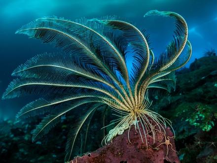 A 70 mètres de profondeur, limite des plongées du photographe, la diversité est incroyable : des méduses, des coquillages, des coraux, des éponges, des petits poissons multicolores... Toutes les couleurs des récifs tropicaux sous la banquise !