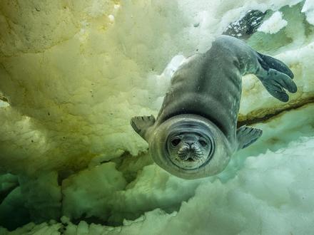 Au fur et à mesure de la descente, Laurent rencontre des phoques, des manchots empereur... Et au fond, un jardin luxuriant : des plantes de toutes les couleurs, des étoiles de mer gigantesques (38 m de diamètre pour certaines), des araignées de mer géantes... On pourrait croire que les espèces, animales et végétales, qui peuplent cet océan sont immortelles. Leur croissance est plus lente que dans les eaux chaudes et tempérées du reste du globe, ce qui explique leurs tailles exceptionnelles.