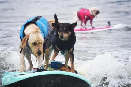 Neuf années que cet événement rassemble les foules, à pieds et à pattes ! Cette année, compétiteurs et spectacteurs se sont donnés rendez-vous le 5 août de 9h à 14h à Linda Mar Beach, à San Francisco. Lors des "World Dog Surging Championships", les canins sont classés par poules selon leur taille. Et les compétiteurs sont originaires des quatre coins du monde : USA évidemment, mais aussi Brésil ou Australie.