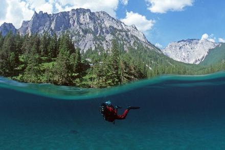 Le lac Grüner See en Autriche est un lieu étonnant : en hiver vous pourrez le visiter à pied, et l'été il faudra vous munir de votre combinaison de plongée pour plonger dans ses eaux cristallines...
