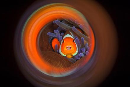 Parmi notre sélection de photos, vous découvrirez notamment le premier prix de la catégorie macro "Prey?" réalisée par So Yat Wai aux Philippines, trois petits poissons clows curieux devenus premier prix de la catégorie comportement avec la photographie "Your home and my home" de Qing Lin ou encore la sublime photo de Nick Blake prise au Mexique dans un superbe cénote, une grotte sous-marine. Les rayons du soleil qui traverse l'eau donne à la photographie à un effet irréel. Ce n'est pas pour rien que "Out of the blue" obtient le prix du photographe sous-marin anglais de l'année ! Et enfin, le must du must, la photographie qui a épaté tout le jury : "Dancing Octopus" réalisée par le Français Gabriel Barathieu, qui a reçu le prix de photographe de l'année. Cet incroyable cliché a été réalisé dans les fonds sous-marins de Mayotte.