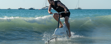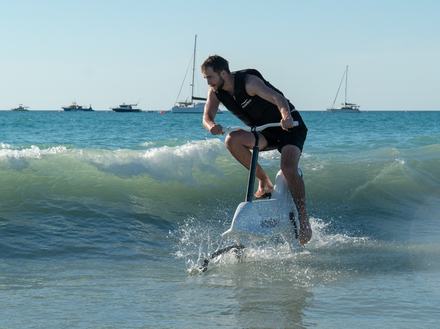 Très maniable, l'Hydrofoiler offre un entraînement similaire à celui d'un vélo de route ou de montagne, et le moteur électrique de 460 watts offre sept niveaux d'assistance variable au pédalage qui peuvent être abaissés ou relevés selon les préférences du conducteur. Une seule charge permet de parcourir 6,5 heures de route au total. Vous tombez en eau profonde ? Le vélo peut commencer à faire de l'aquaplanage en eau libre à partir d'un arrêt complet en 15 coups de pédale. Le fondateur de Manta5, Guy Howard-Willis, a déjà les yeux rivés sur les Jeux olympiques !