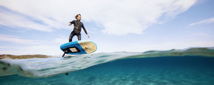 C.D. : « Pour chaque modèle, vous pouvez choisir la taille de votre planche selon votre gabarit et/ou votre expérience de glisse, ainsi que le format de la batterie et la taille de l’aile avant. Chaque E-Foil est évolutif : vous pouvez tout à fait opter pour une planche plus petite après plusieurs sessions si vous commencez à maîtriser l’engin ou si vous souhaitez varier les sensations ! À noter que plus la planche est petite, plus l’E-Foil est diffi cile à manier.