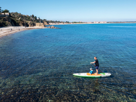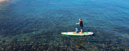 La forme et les dimensions de la planche sont bien évidemment d’autres éléments essentiels à prendre en compte. Avec leur forme arrondie, leur longueur généralement comprise entre 9’ et 11’ et leur largeur confortable de 30’’ à 35’’, le format All Round est le plus communément répandu et offre le meilleur compromis confort / glisse / maniabilité / prix. On veillera toujours à bien choisir les dimensions en fonction de son gabarit, privilégiant les volumes plus élevés (>250 L) pour les gabarits moyens à lourds. Plus sportives et performantes, les planches de format Touring sont plus longues (de 11’ à 14’) et généralement moins larges (28’’- 32’’) avec une partie avant plus pincée. Elles possèdent ainsi une meilleure pénétration à travers le plan d’eau (clapot, vent) et une glisse plus marquée, permettant de parcourir facilement de plus grandes distances et d’accompagner des cadences de rame plus élevées, en mode Fitness par exemple. Ces planches un peu plus onéreuses, possèdent une assez bonne stabilité sur l’eau et proposent une plage d’utilisation particulièrement large. Elles représentent un excellent investissement pour faire évoluer sa pratique et accompagner idéalement sa progression.