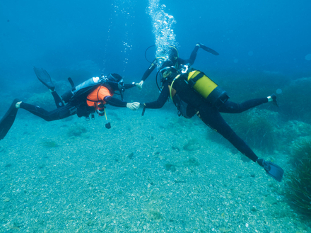 Les dernières immersions sont un véritable bonheur, les automatismes sont là, les exercices sont maîtrisés et prennent moins de temps sur la plongée. Les explorations se font plus nombreuses et je profite enfin de ce qui m’entoure. Même si la faune et la flore étaient présentes tout au long de la formation, le manque d’assurance et la concentration portée sur la gestion de ma plongée ne me permettaient pas de me relâcher pour les observer en détail. Je me rends dans une petite grotte, je longe des tombants, j’avance au milieu des posidonies… je découvre les gorgones rouge et jaune, les anémones encroûtantes, j’observe pour la première fois des nudibranches – encore plus petits que ce que j’imaginais —, je finis même par dénicher une petite murène à l’abri dans une cavité et un poulpe caché entre deux rochers. Le diplôme en poche, c’est une multitude de possibilités qui s’offrent à moi, voyager et explorer les fonds de pays lointains, voir des jardins sous-marins tapissés de coraux, explorer des épaves, me retrouver nez à nez avec des créatures magnifiques : tortues, raies mantas, baleines et même requins. La prochaine étape ? Aller encore plus loin dans la formation pour découvrir ce qui se cache au-delà de 30 mètres de profondeur… Pour cela, il me faut désormais le niveau 2 !