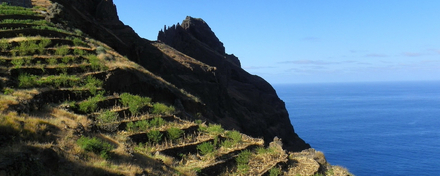 Si de prime abord les deux îles affichent une ambiance de terres brûlées, Santo Antão se révèle être LA zone verte de l'archipel. Enfin honore-t-il son nom ! Car la surprise est grande en franchissant les portes de l'aéroport : pas une touche de vert dans le paysage montagneux et volcanique qui s'impose d'emblée, seulement quelques épineux et touffes d'acacias disputés par les chèvres sur le bord de la route, et partout une terre ocre, poussiéreuse.