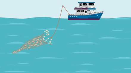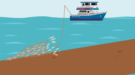 C’est l’une des méthodes les plus destructrices. Un immense filet est traîné sur le fond marin, raclant tout sur son passage, détruisant les habitats sous-marins et capturant des espèces sans distinction. Le merlu, le cabillaud et la sole sont souvent pêchés de cette manière.