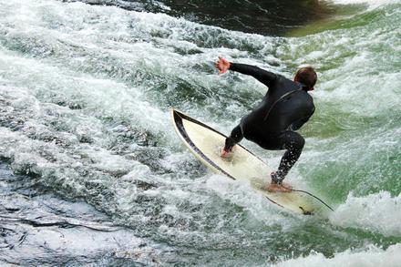 Il n'en a pas toujours été ainsi. Autrefois, la vague de l'Eisbach était entièrement naturelle et surfable de façon irrégulière, lorsque, par exemple, du gravier s'accumulait dans le lit de la rivière et bloquait le courant.